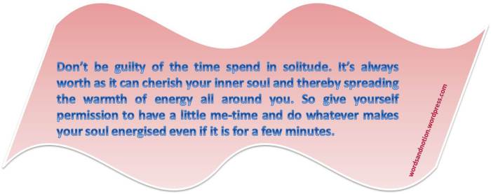 Don’t be guilty of the time spend in solitude. It’s always worth as it can cherish your inner soul and thereby spreading the warmth of energy all around you. So give yourself permission to have a little me-time.